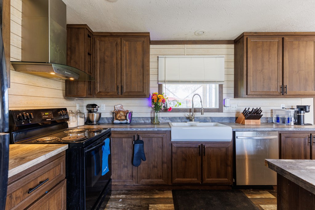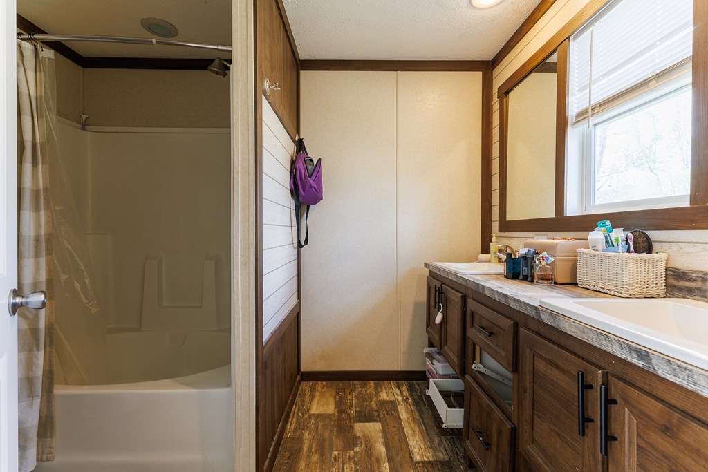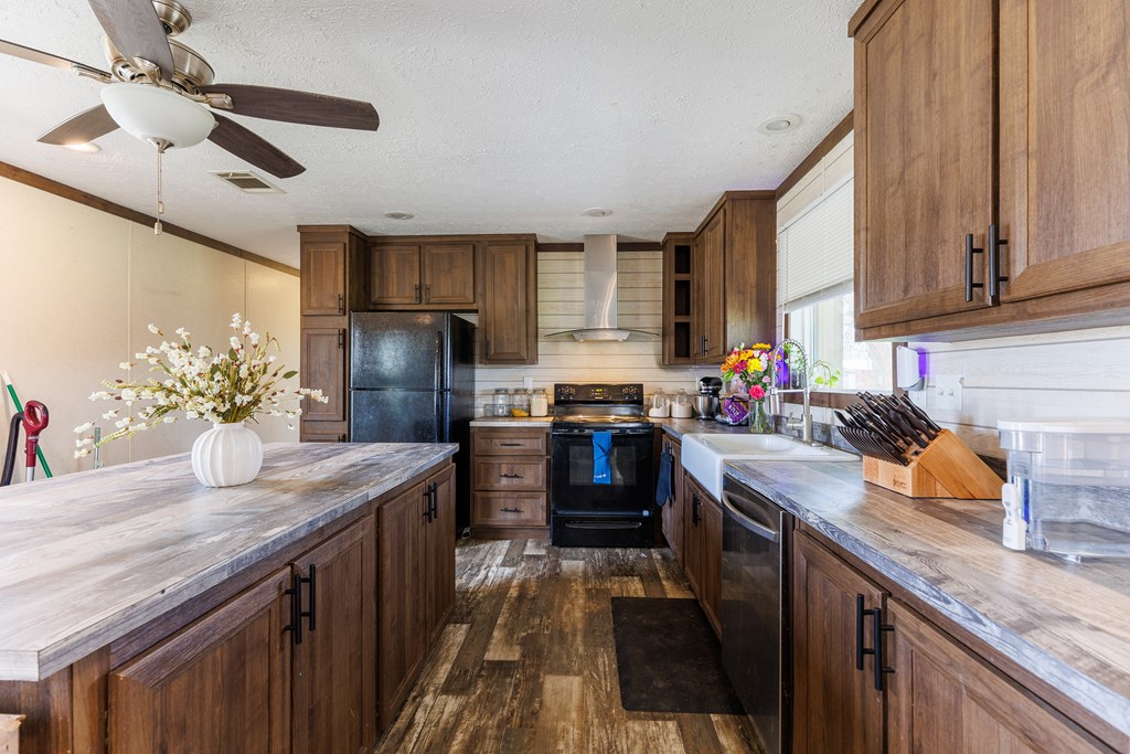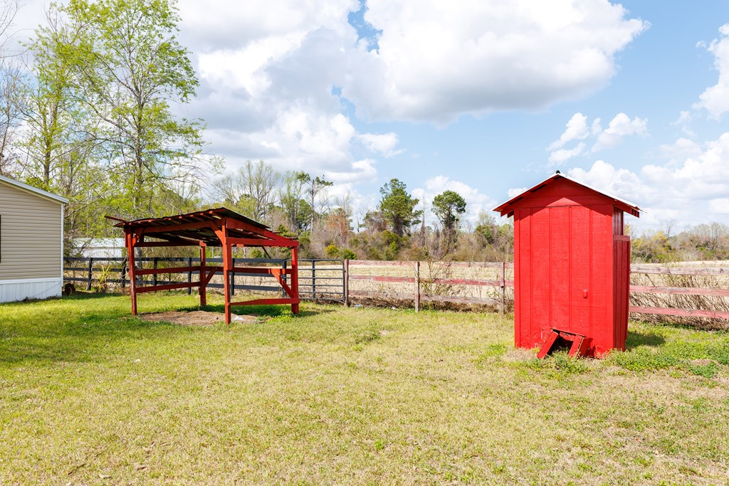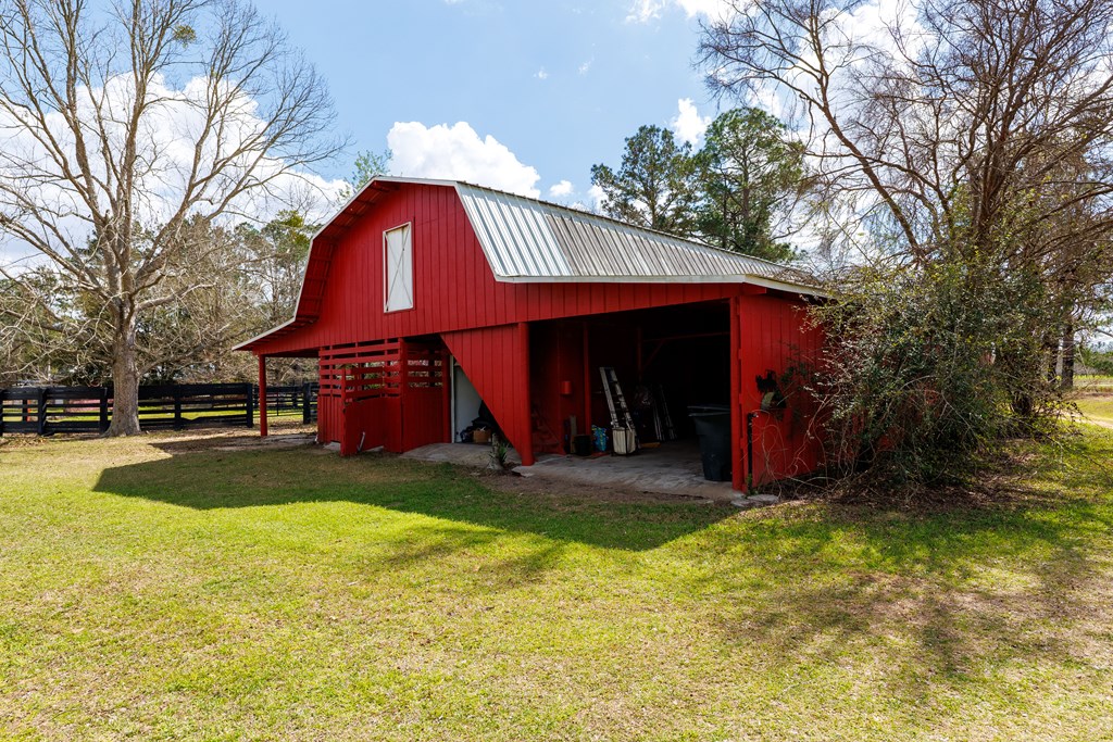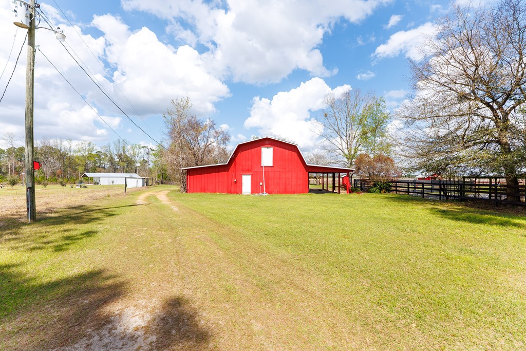 Discover the charm of country living in this spacious home featuring three bedrooms and two full bathrooms. The heart of the home is the inviting kitchen, complete with a large island, a deep sink, and a window that offers serene views of the nearby big red barn. Enjoy the continuity of space between the family room and the kitchen, which opens seamlessly, perfect for gatherings. The primary suite boasts its own bathroom, equipped with a tub and shower combo, a double vanity, and a generous walk-in closet for ample storage. The two additional bedrooms share a well-appointed bathroom, ideal for family and guests. Outside, the big red barn adds to the allure, providing plenty of storage and horse stables, along with a cozy apartment suite inside. The property also includes a functional chicken coop and multiple water spigots for easy maintenance. Additionally, two other structures complement the barn, enhancing the overall charm of this peaceful retreat. Both the barn and the mobile home have new roofs