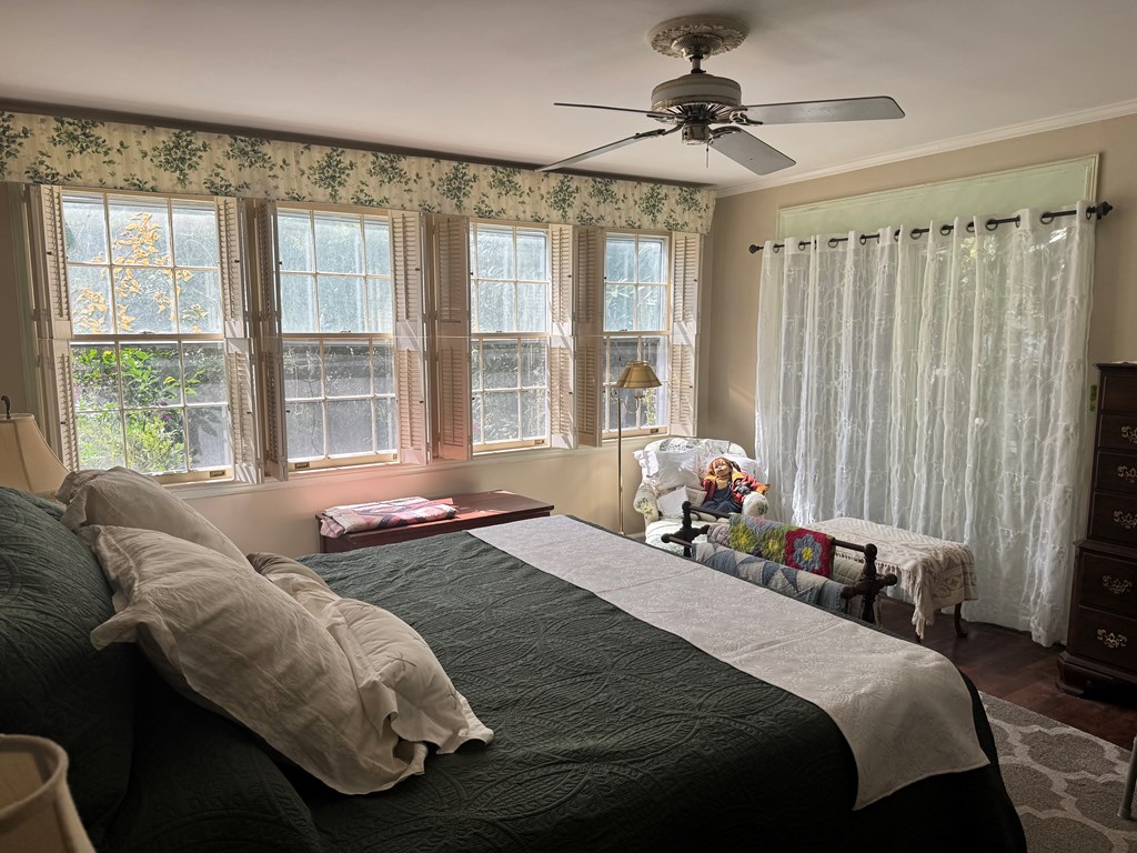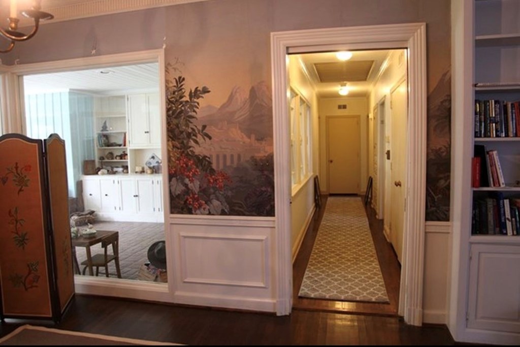 Check out this large 5-bedroom, 4-bath home filled with natural light and extra storage throughout. Two spacious living areas feature built-in bookcases and cabinetry, along with both a wood-burning fireplace and a gas-log fireplace. The dining room features Zuber El Dorado wallpaper. The kitchen has a large island, offering plenty of counterspace. The breakfast area includes additional built-in cabinetry and a wet bar. The laundry room offers generous storage and a new water purification system. The primary suite opens to a private courtyard. The primary bath includes a gentleman's shower and a built-in dresser for more storage. A large double room provides flexible space for multiple uses, including bedrooms. Closets include built-in dust guards. The garage includes a small office with built-in storage. Enjoy your own oasis in the private backyard.