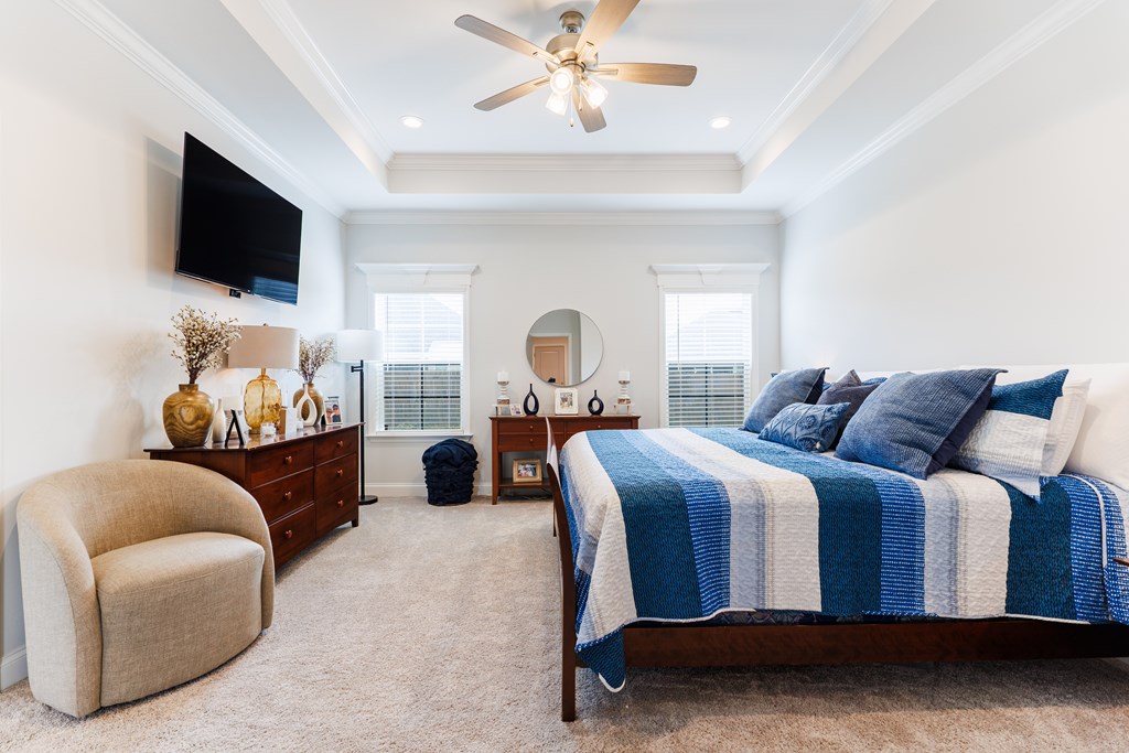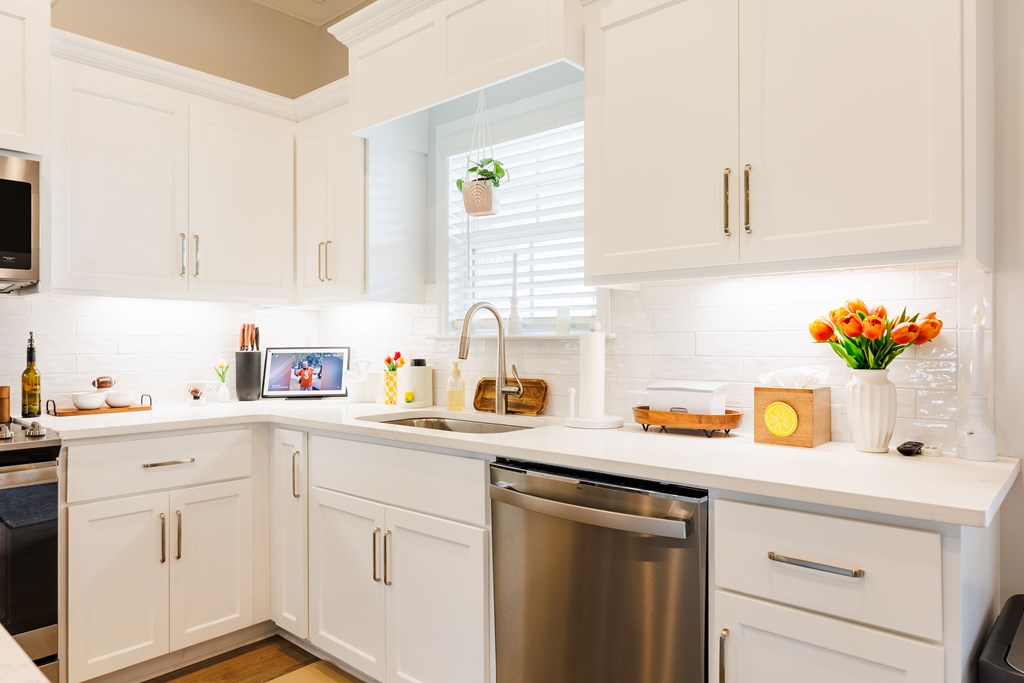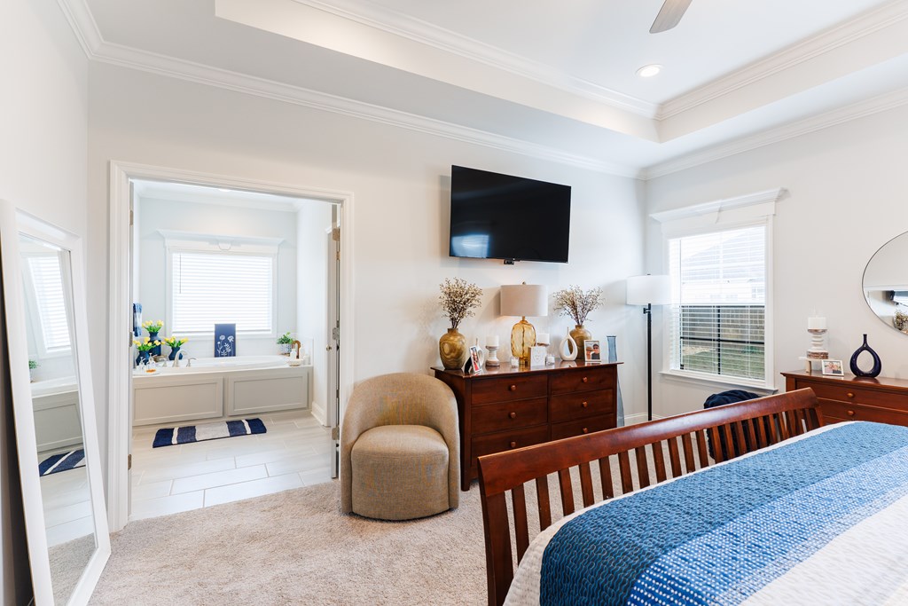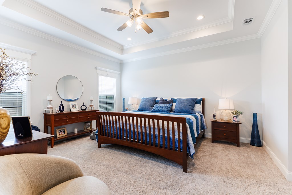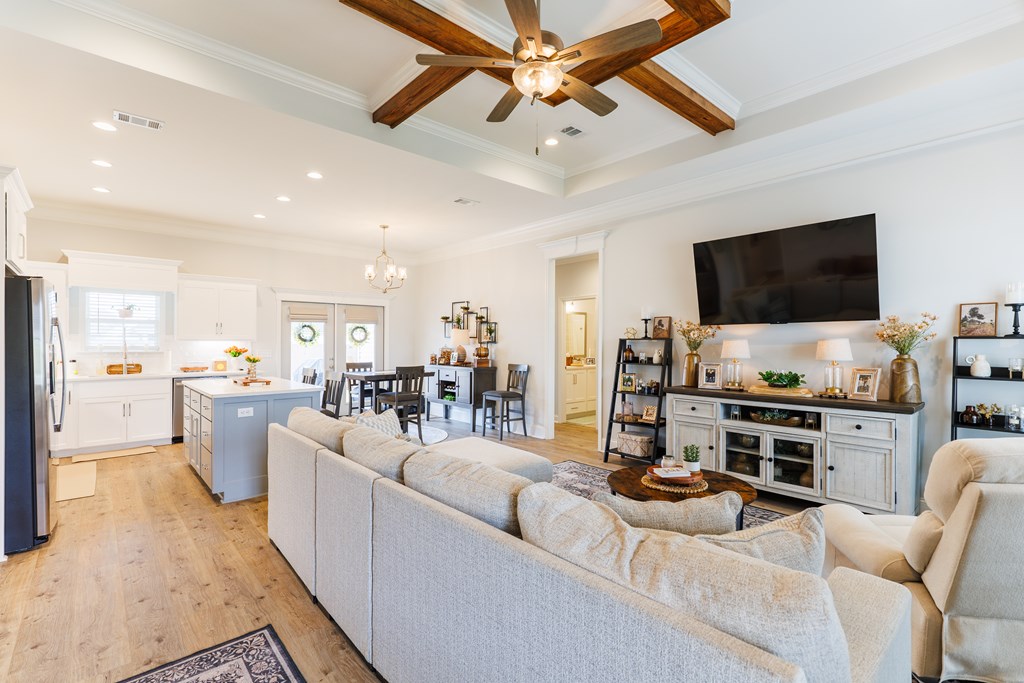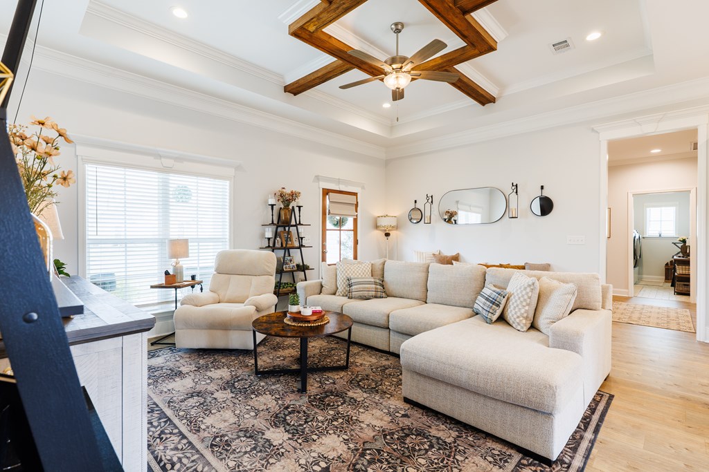 Welcome to this three-bedroom, two-bath home located in the Cattle Crossing Subdivision. The neighborhood offers a single entrance and exit for added privacy and is conveniently located to Moody Air Force Base.The front porch welcomes you into the home. Inside, there's attractive woodwork on the living room ceiling. The kitchen features custom cabinets, quartz countertops, under cabinet lighting, a custom pantry, and stainless steel appliances. It leads to a covered back porch and a brick paver area, perfect for chairs and a fire pit. The yard is fenced with privacy fencing.The primary suite is spacious, with a separate soaking tub ,a tile shower, white Carrera quartz countertops.and a wraparound walk-in custom closet. The laundry room includes extra cabinetry and quartz countertops. The other two bedrooms share a bathroom, and the light colors throughout the home provide a bright atmosphere.This home offers a blend of comfort and functionality in a quiet setting.