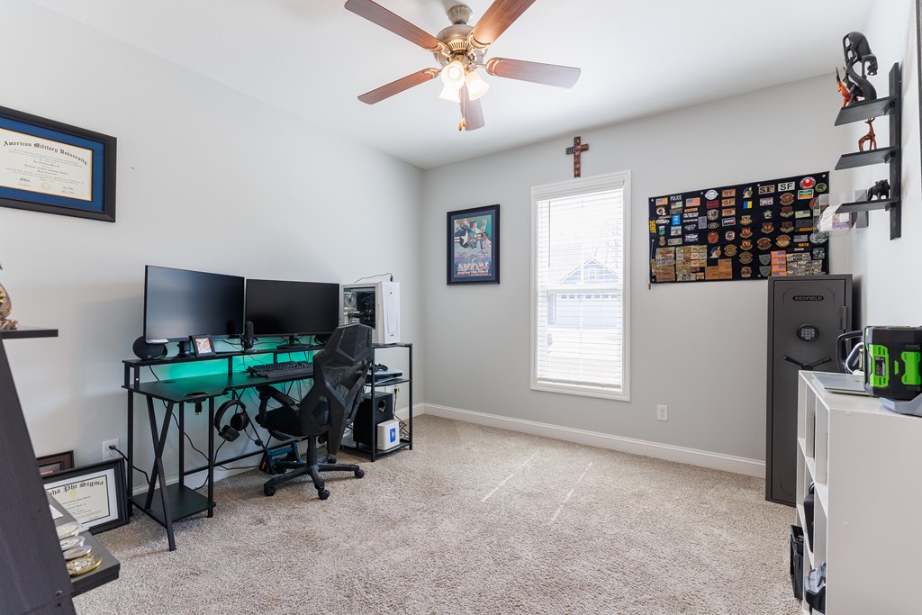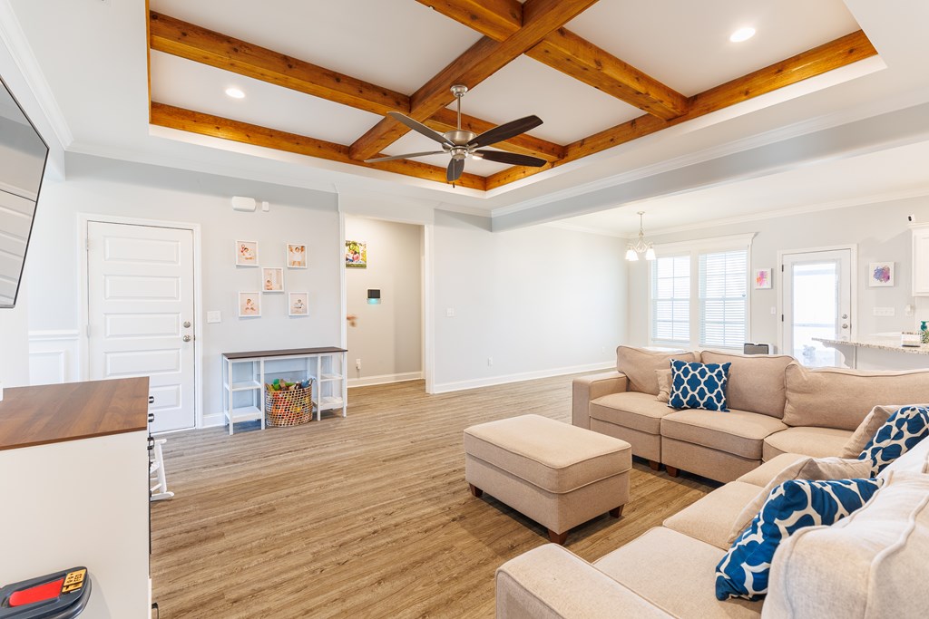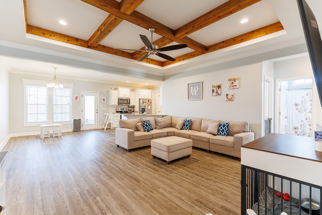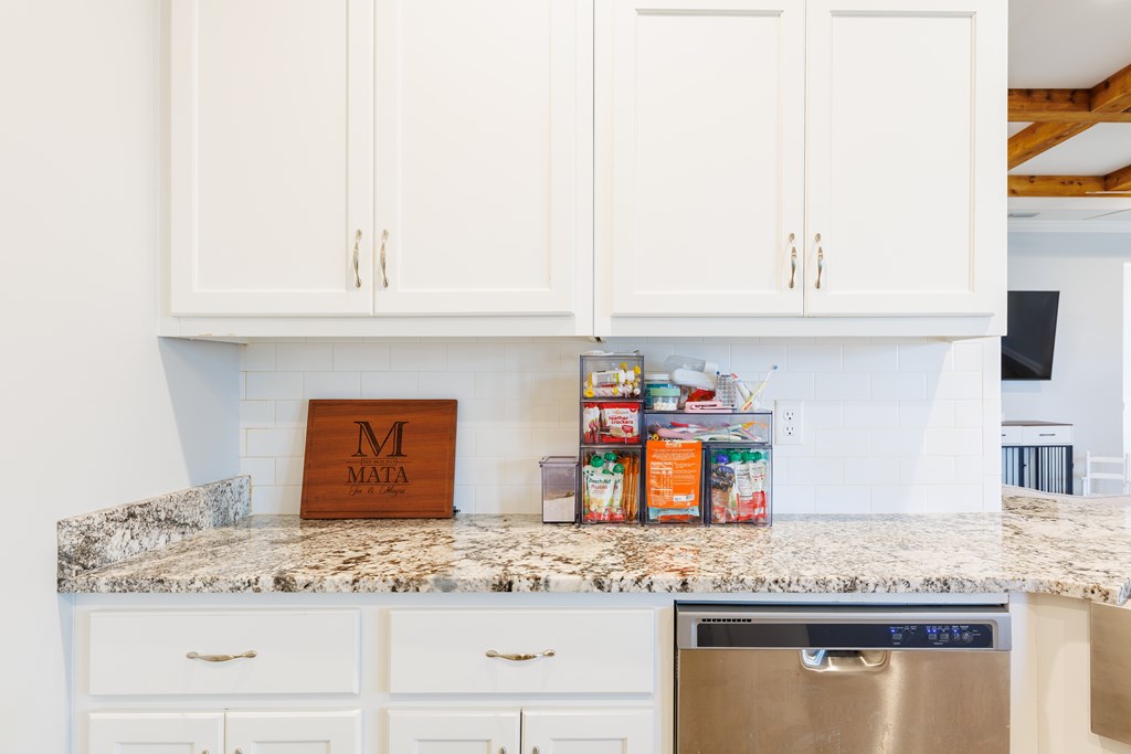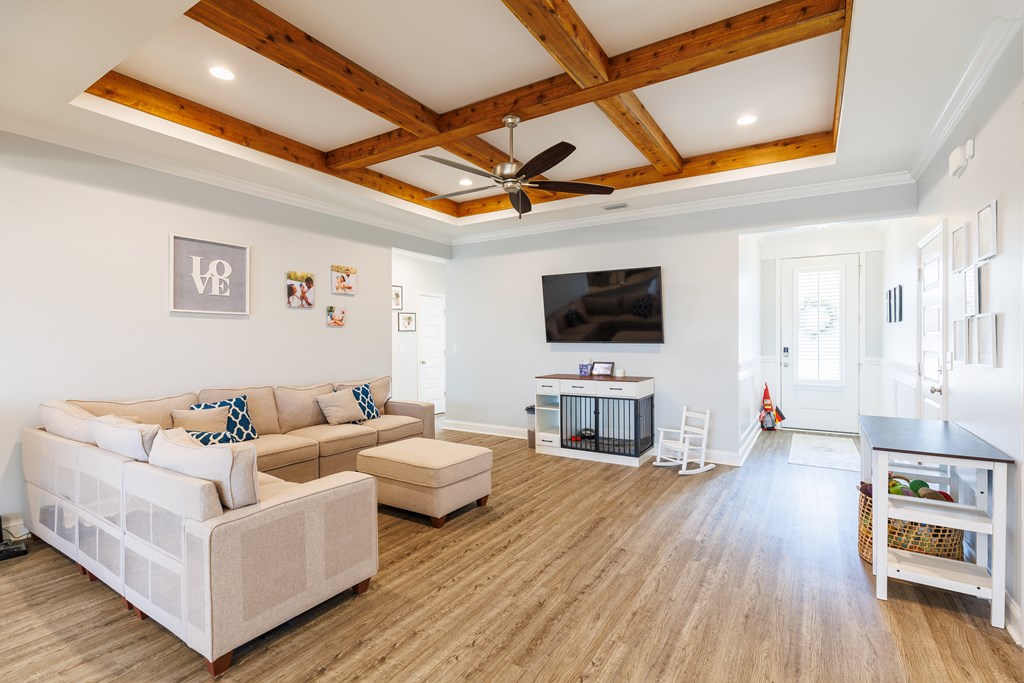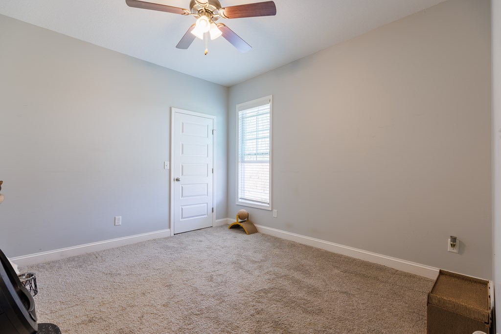Welcome to this beautifully designed 4 bedroom, 2 bathroom home in Val Del Villas where thoughtful upgrades and stylish details create a space that truly stands out. From the moment you arrive, the charming curb appeal is highlighted by classic wood shutters that add warmth and character to the exterior. Step inside to a welcoming foyer that opens into a spacious living room featuring a stunning wood-accented tray ceiling that creates an eye-catching focal point. The open layout flows seamlessly into the dining area and kitchen, making the space ideal for everyday living and entertaining. The kitchen is both stylish and functional, complete with granite countertops, white cabinetry, a tiled backsplash, stainless steel appliances, and a large peninsula island perfect for barstool seating. The pantry with custom wood shelving provides excellent storage and organization. Designed with a split floor plan, the primary suite offers a private retreat featuring a beautiful wood-accented tray ceiling, shiplap wall detailing, and a sliding barn door leading into the bathroom. The primary bath includes granite countertops, wood-trimmed mirrors, a built-in vanity space, and a fully tiled dual shower for a spa-like finish. On the opposite side of the home, you'll find three additional bedrooms and a well-appointed secondary bathroom with granite countertops and quality finishes throughout. Step outside to enjoy the screened-in back patio and extended open patio, the perfect place to relax or entertain while enjoying the outdoors. Additional upgrades include a full-home water softener system, epoxy flooring in the two-car garage, and a security system for added convenience and peace of mind. Conveniently located just minutes from Moody Air Force Base. USDA eligible and termite bonded!