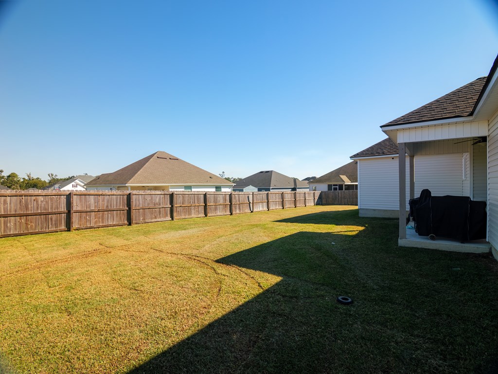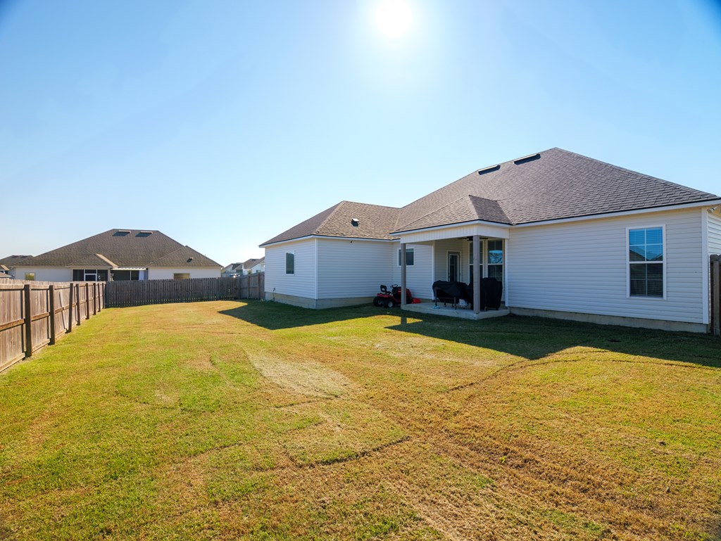 Welcome to Knights Landing! Come and enjoy a beautiful 4/3 with an open floor plan that has ample living space and natural light! The kitchen features custom cabinets, stainless steel appliances, granite counter tops, and a pantry. The master has a large his/her vanity, large walk-in tiled shower, granite counter tops, garden tub, and large wrap around closet. All bedrooms have carpet, LPV in the living/kitchen areas, and tile in the bathrooms. This property also has a fenced yard which perfect for pets or play, covered back porch, and access to the community pool and playground. Just minutes from Moody and all that Valdosta has to offer. Come make this home your own!