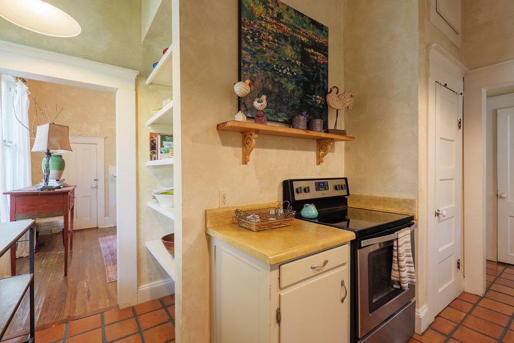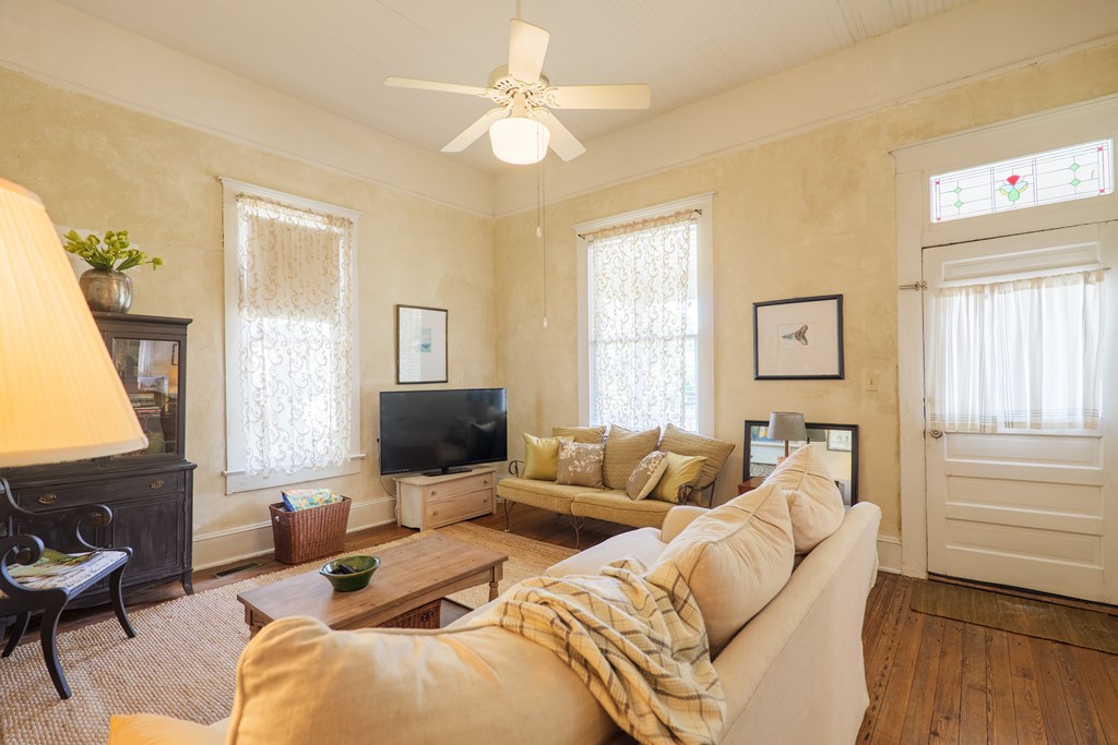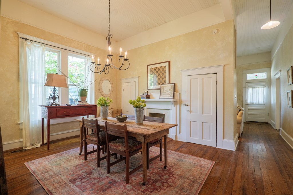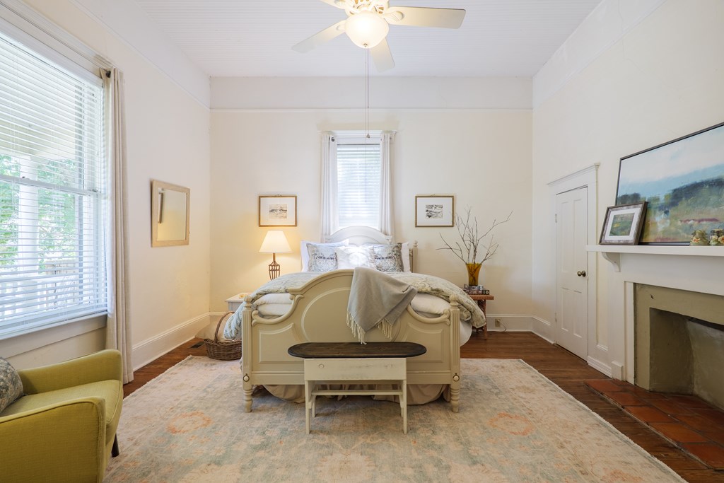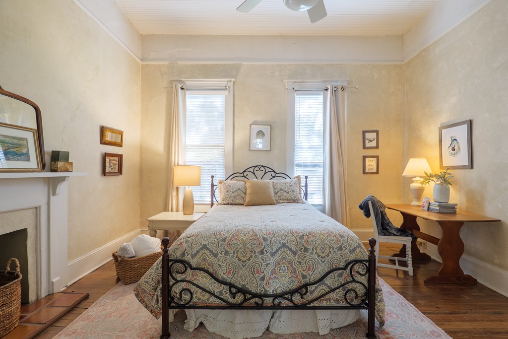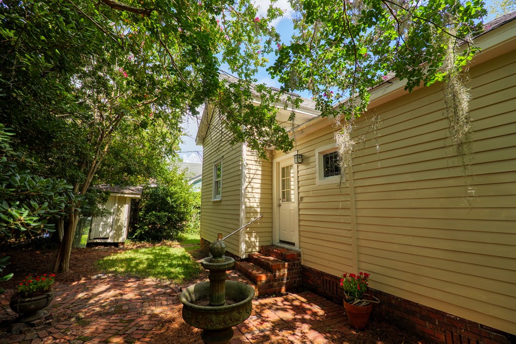 Welcome to this charming, spacious two-bedroom, two-bath home situated in the Fairview Historical District. You'll love the convenience of being a short walk away from vibrant downtown Valdosta, filled with bustling shops, a cozy coffee shop, wonderful restaurants, and unique boutiques. The property greets you with a front porch, perfect for morning, coffee. The stained glass above the front door adds a touch of charm. Step inside to discover 12-foot ceilings throughout and original hart pine floors throughout. Both bedrooms are large and filled with unique features, offering plenty of room for relaxation. The galley kitchen is both functional and stylish perfect for gatherings with friends and family. Outside the courtyard style backyard, accessible via a charming brick pathway, where you can enjoy outdoor gatherings, gardening, or relaxing. This home is a delightful blend of classic charm and modern comfort. Don't miss out on this unique opportunity!