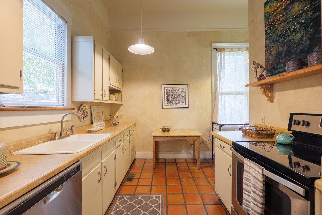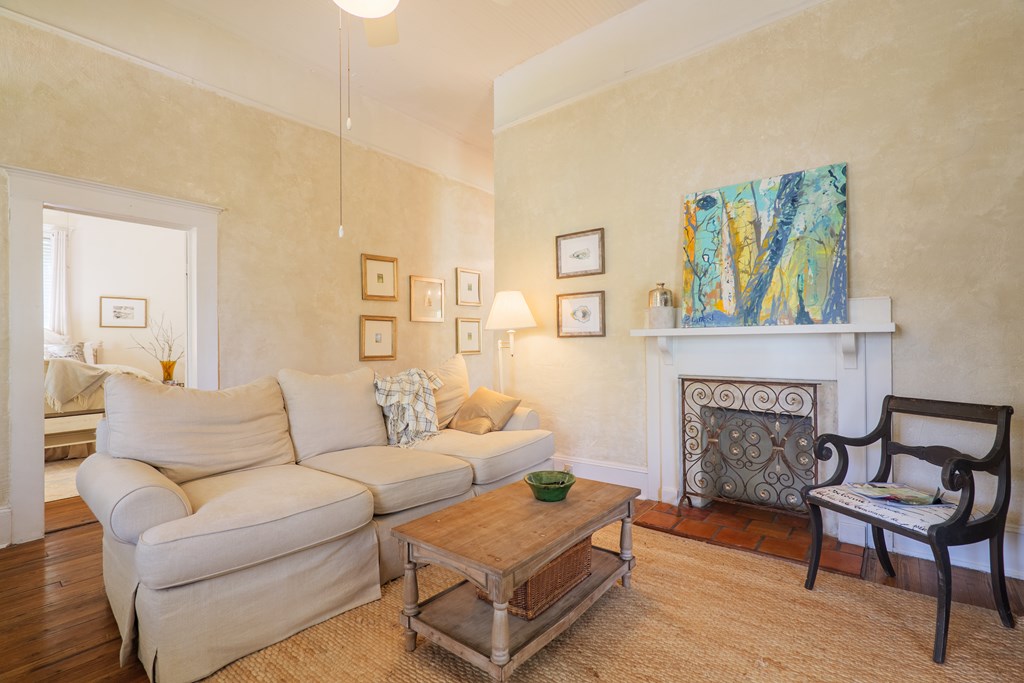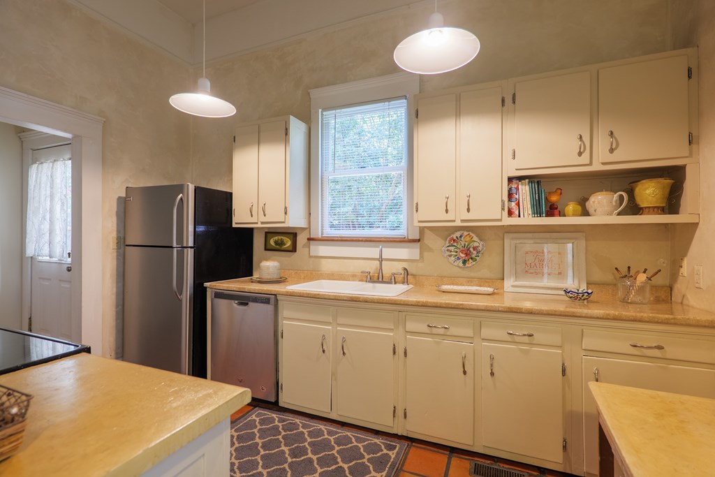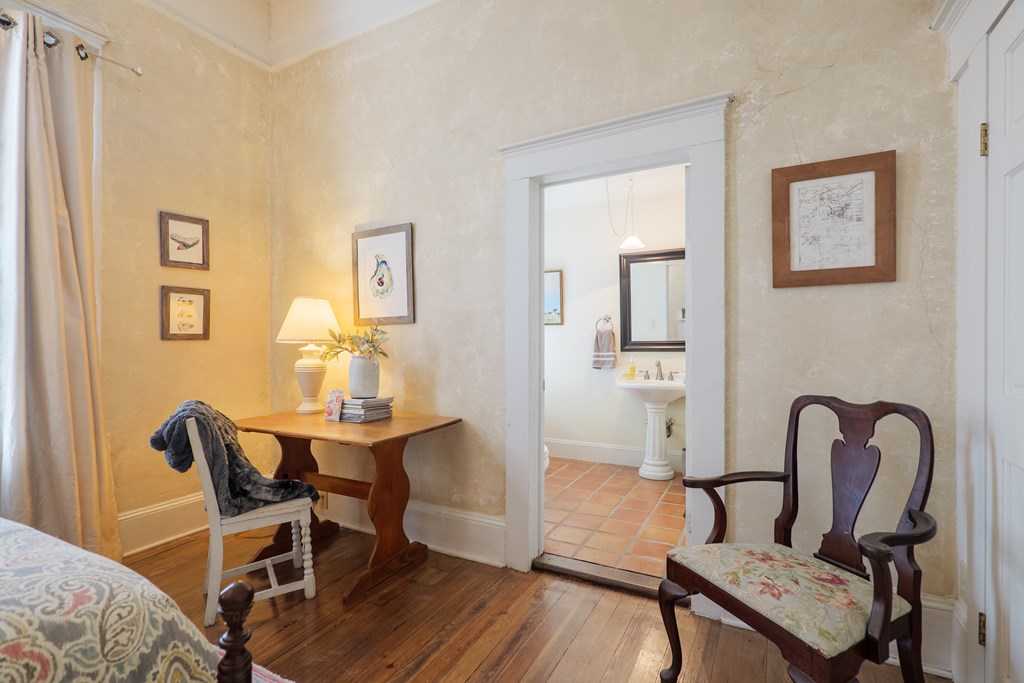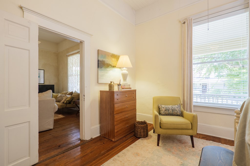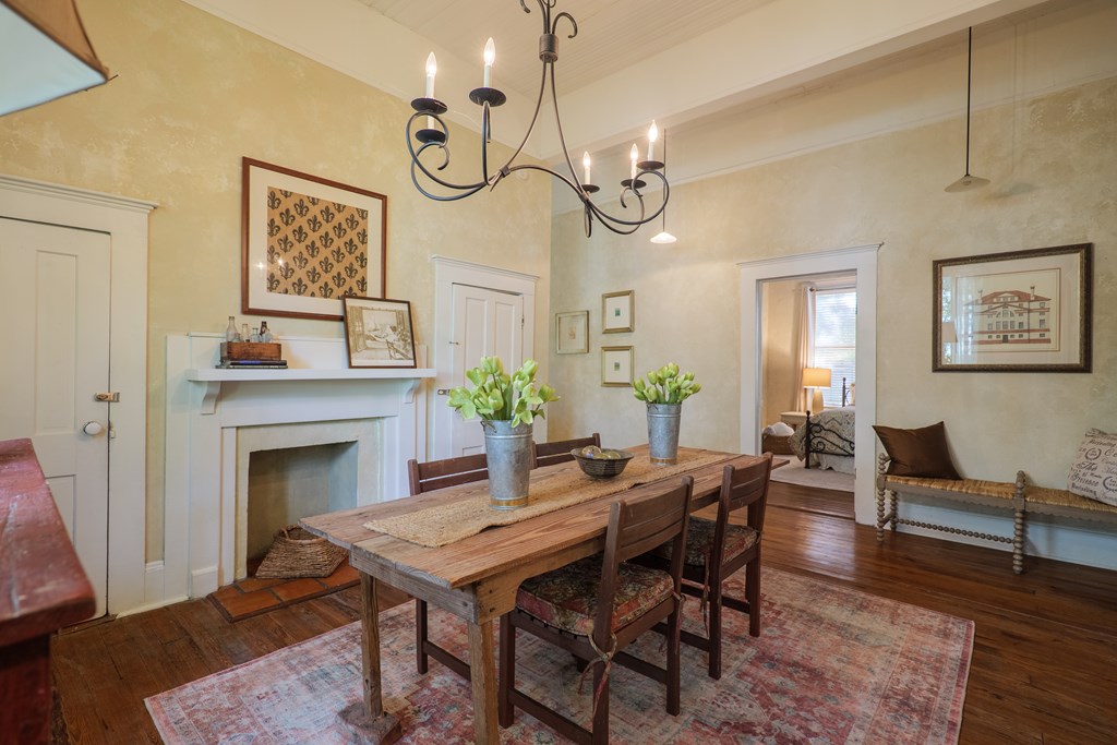 Welcome to this charming, spacious two-bedroom, two-bath home situated in the Fairview Historical District. You'll love the convenience of being a short walk away from vibrant downtown Valdosta, filled with bustling shops, a cozy coffee shop, wonderful restaurants, and unique boutiques. The property greets you with a front porch, perfect for morning, coffee. The stained glass above the front door adds a touch of charm. Step inside to discover 12-foot ceilings throughout and original hart pine floors throughout. Both bedrooms are large and filled with unique features, offering plenty of room for relaxation. The galley kitchen is both functional and stylish perfect for gatherings with friends and family. Outside the courtyard style backyard, accessible via a charming brick pathway, where you can enjoy outdoor gatherings, gardening, or relaxing. This home is a delightful blend of classic charm and modern comfort. Don't miss out on this unique opportunity!