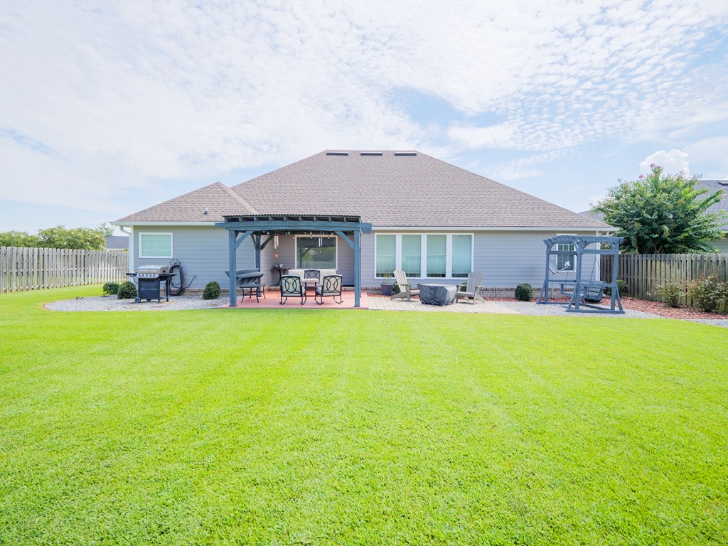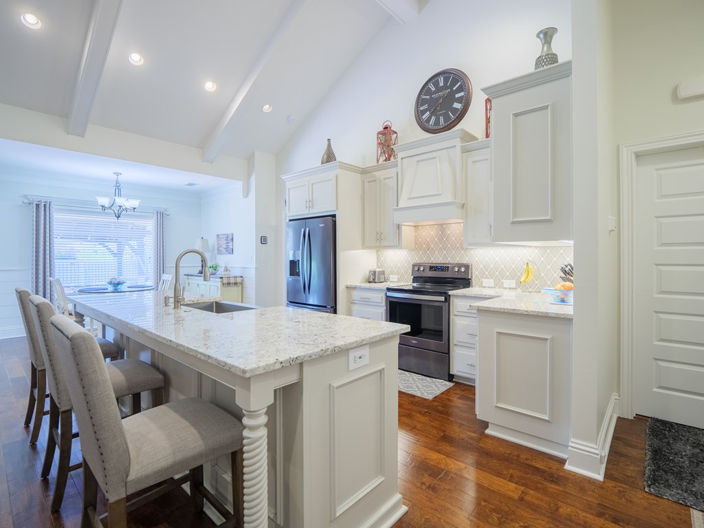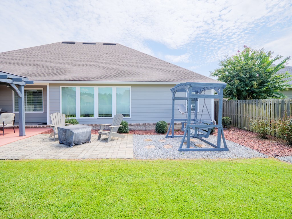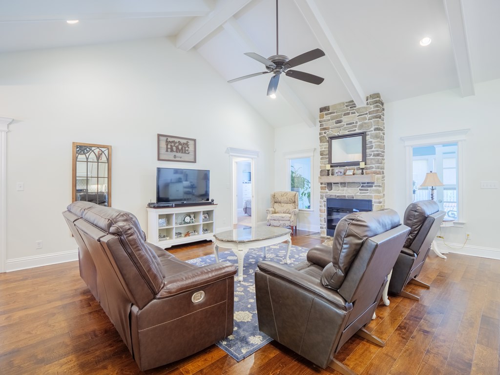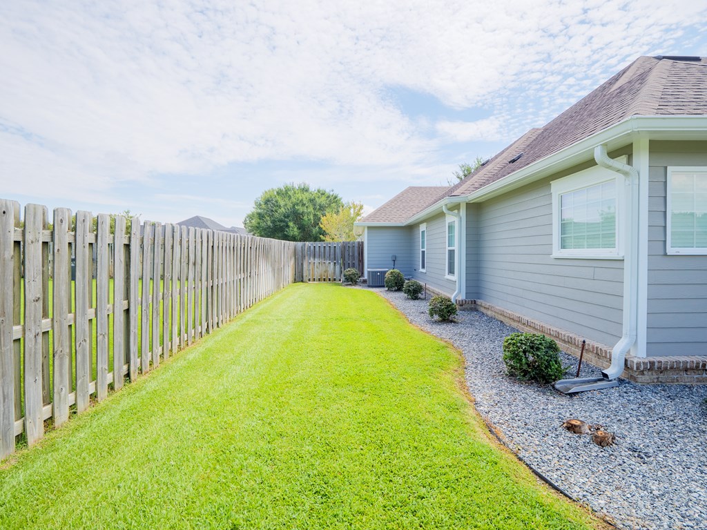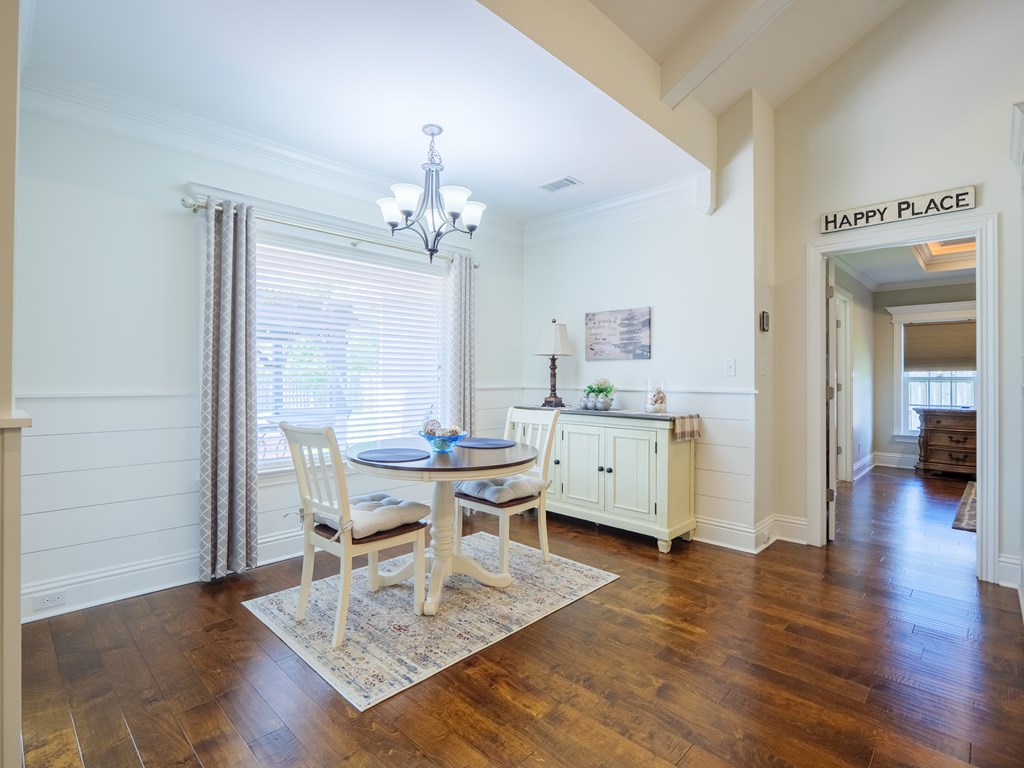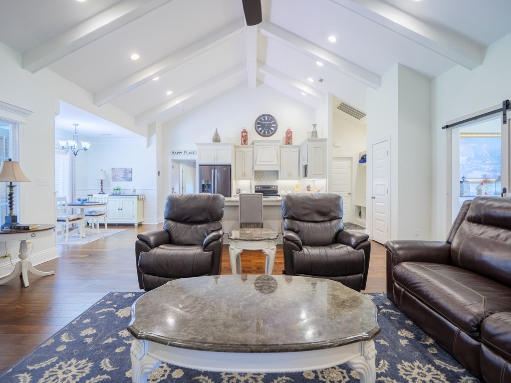 Located in the prestigious Kinderlou Forest Subdivision, this one-owner home built by Dixon Taylor Construction has been impeccably maintained. It could still easily pass as new construction! Featuring 4 bedrooms and 3 full baths, each bedroom offers private bath access for comfort and convenience. The open living room boasts a stone fireplace and flows seamlessly into the beautiful kitchen with granite countertops, tile backsplash, and abundant custom cabinetry. The spacious master suite includes two large walk-in closets, an en-suite bath with dual vanities, a corner soaking tub, tiled walk-in shower, and private water closet. Wood floors enhance much of the home, and the rear sunroom provides flexible living space with a pretty view of the patio sitting area in the fenced in back yard. A large 2-car garage plus a 3rd bay is perfect for golf carts, bikes, or storage. Enjoy manicured landscaping in both front and back yards. Community amenities include a staffed gated entrance, pools, tennis and pickleball courts, chapel, restaurant, playground, fitness center, and the renowned Davis Love III designed golf course. Truly a beautiful home! For more information on Kinderlou Forest S/D, visit their website at https://www.kinderlou-golf.com.