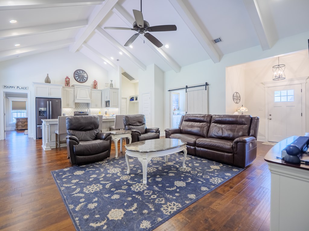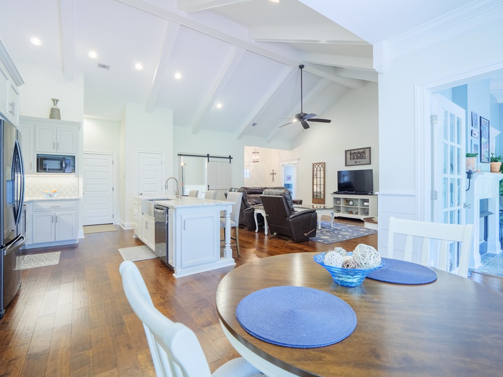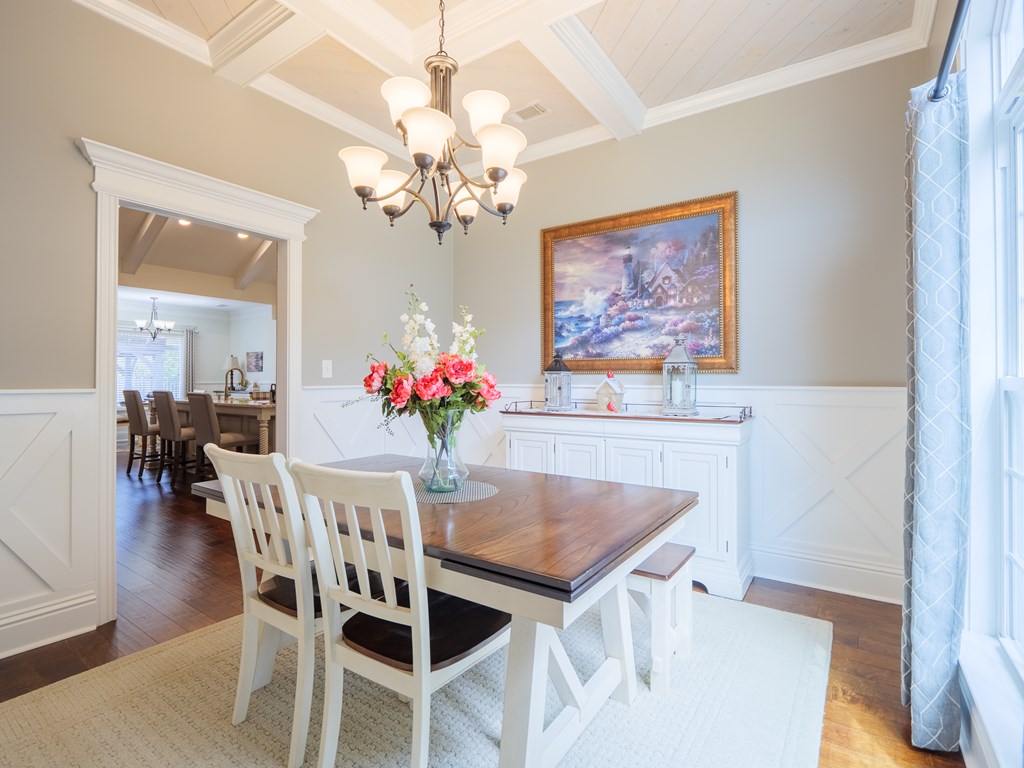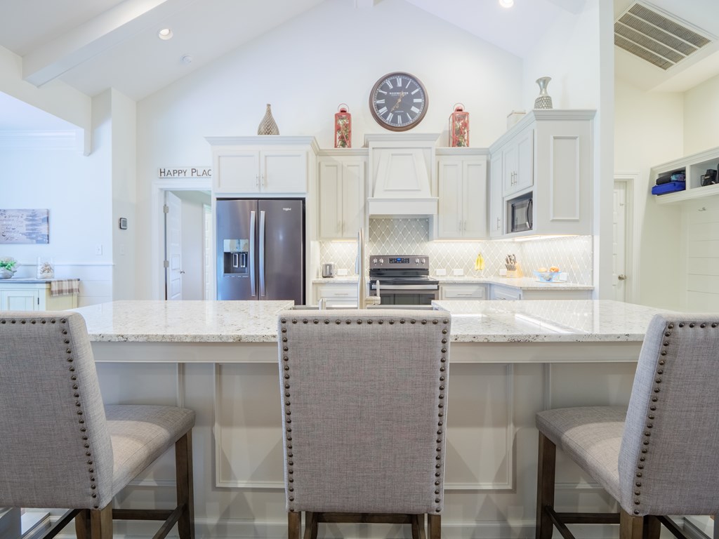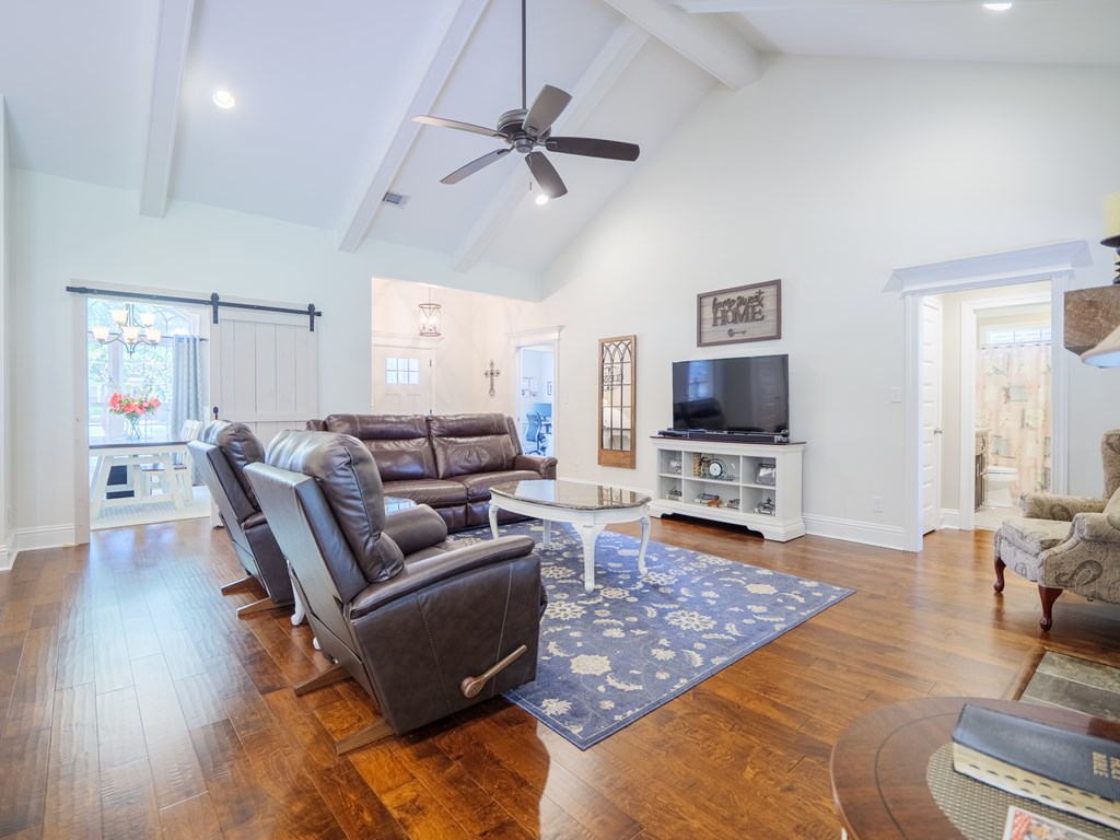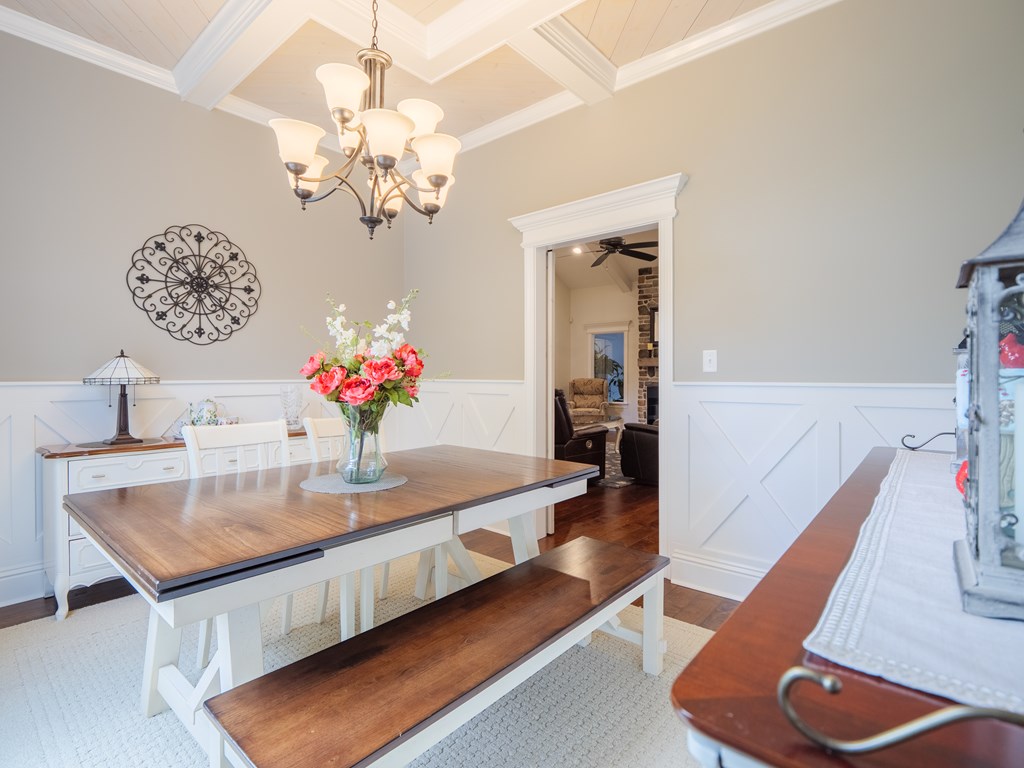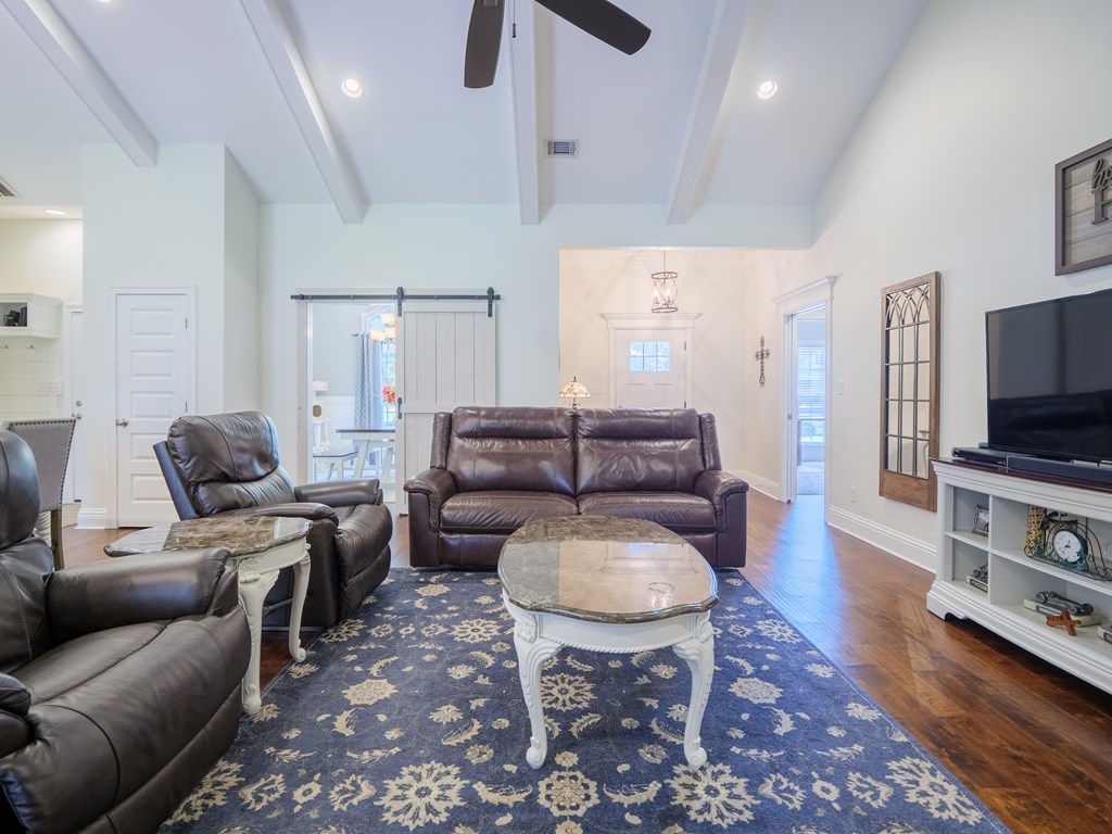 Located in the prestigious Kinderlou Forest Subdivision, this one-owner home built by Dixon Taylor Construction has been impeccably maintained. It could still easily pass as new construction! Featuring 4 bedrooms and 3 full baths, each bedroom offers private bath access for comfort and convenience. The open living room boasts a stone fireplace and flows seamlessly into the beautiful kitchen with granite countertops, tile backsplash, and abundant custom cabinetry. The spacious master suite includes two large walk-in closets, an en-suite bath with dual vanities, a corner soaking tub, tiled walk-in shower, and private water closet. Wood floors enhance much of the home, and the rear sunroom provides flexible living space with a pretty view of the patio sitting area in the fenced in back yard. A large 2-car garage plus a 3rd bay is perfect for golf carts, bikes, or storage. Enjoy manicured landscaping in both front and back yards. Community amenities include a staffed gated entrance, pools, tennis and pickleball courts, chapel, restaurant, playground, fitness center, and the renowned Davis Love III designed golf course. Truly a beautiful home! For more information on Kinderlou Forest S/D, visit their website at https://www.kinderlou-golf.com.