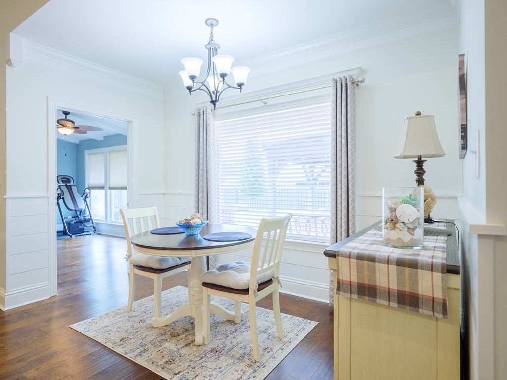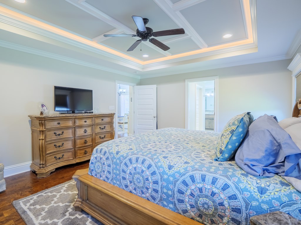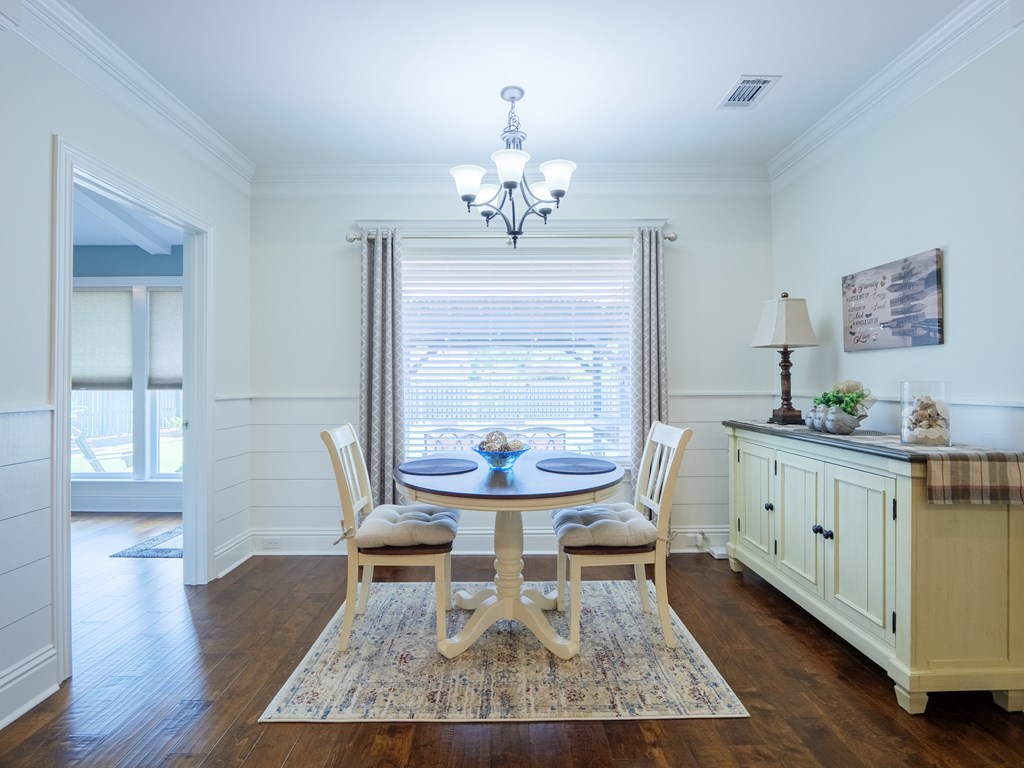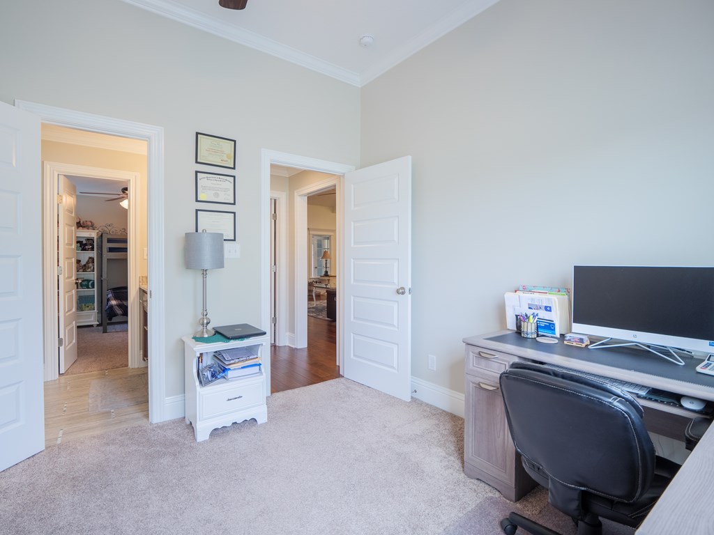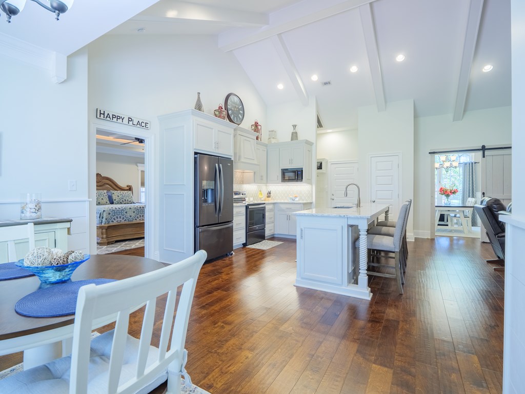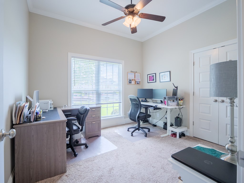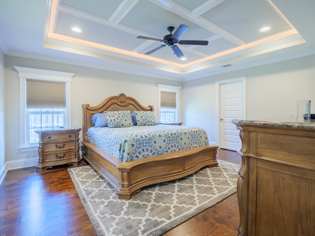 Located in the prestigious Kinderlou Forest Subdivision, this one-owner home built by Dixon Taylor Construction has been impeccably maintained. It could still easily pass as new construction! Featuring 4 bedrooms and 3 full baths, each bedroom offers private bath access for comfort and convenience. The open living room boasts a stone fireplace and flows seamlessly into the beautiful kitchen with granite countertops, tile backsplash, and abundant custom cabinetry. The spacious master suite includes two large walk-in closets, an en-suite bath with dual vanities, a corner soaking tub, tiled walk-in shower, and private water closet. Wood floors enhance much of the home, and the rear sunroom provides flexible living space with a pretty view of the patio sitting area in the fenced in back yard. A large 2-car garage plus a 3rd bay is perfect for golf carts, bikes, or storage. Enjoy manicured landscaping in both front and back yards. Community amenities include a staffed gated entrance, pools, tennis and pickleball courts, chapel, restaurant, playground, fitness center, and the renowned Davis Love III designed golf course. Truly a beautiful home! For more information on Kinderlou Forest S/D, visit their website at https://www.kinderlou-golf.com.
