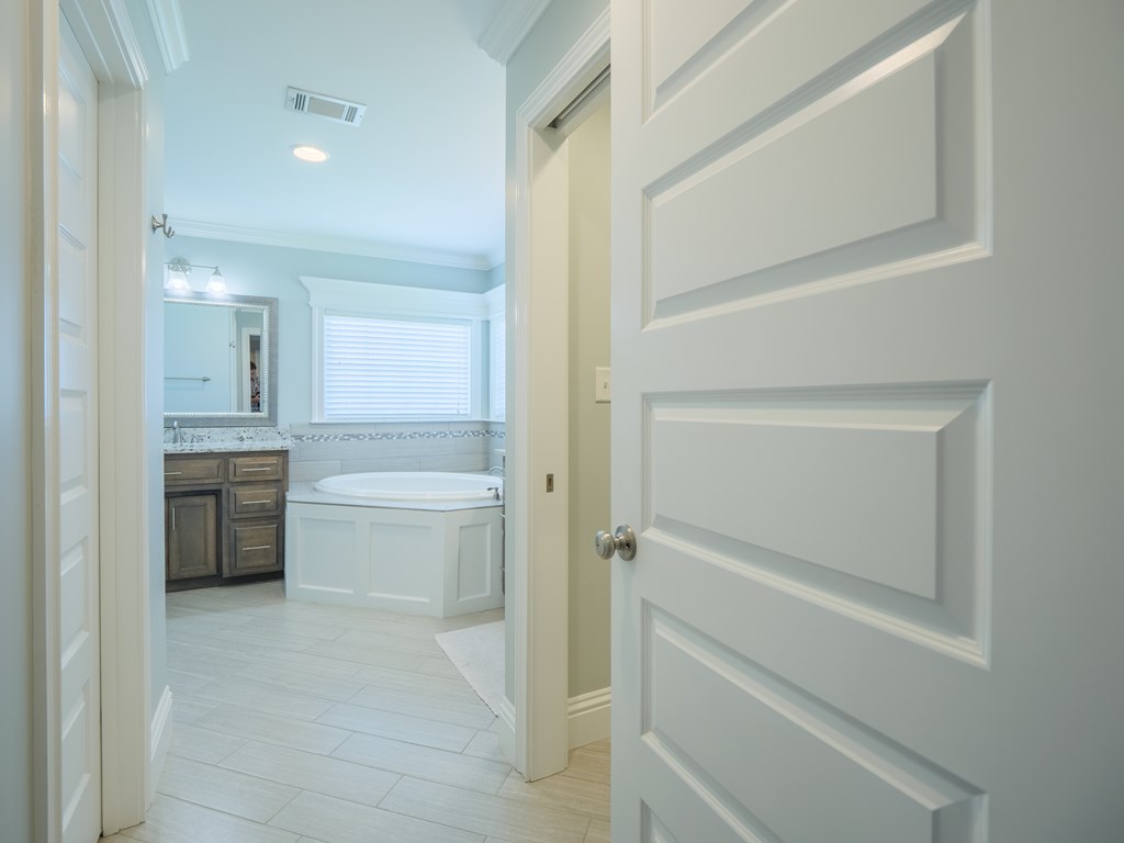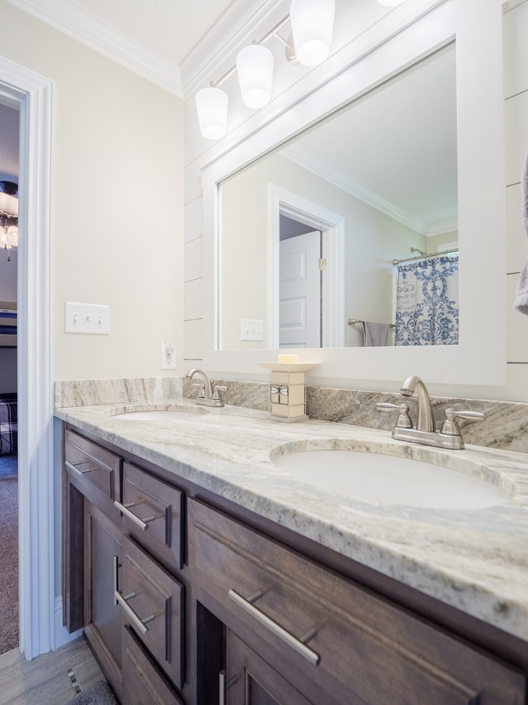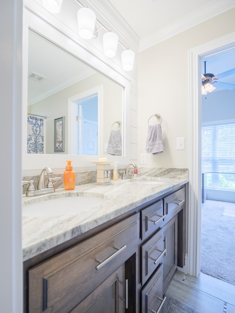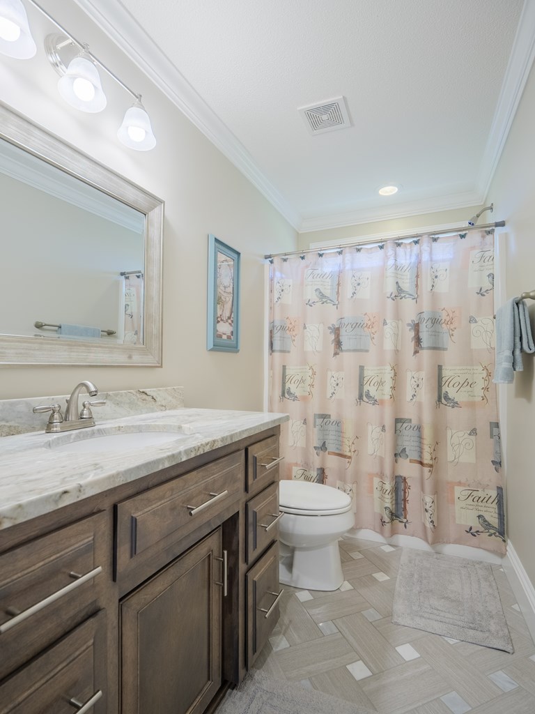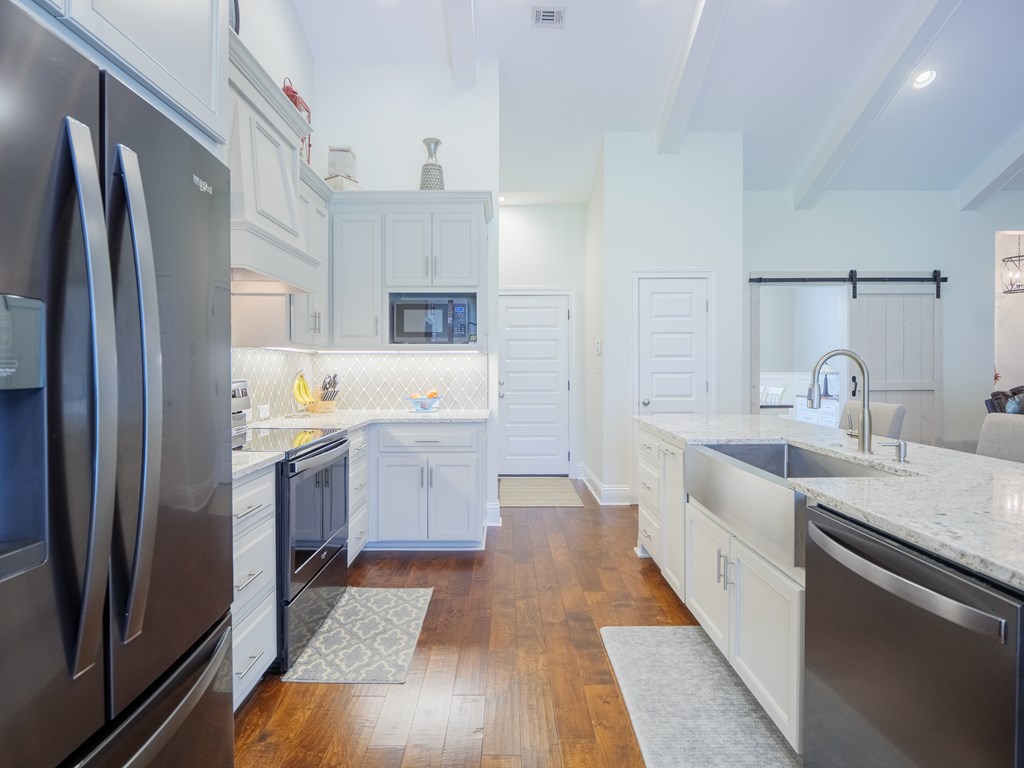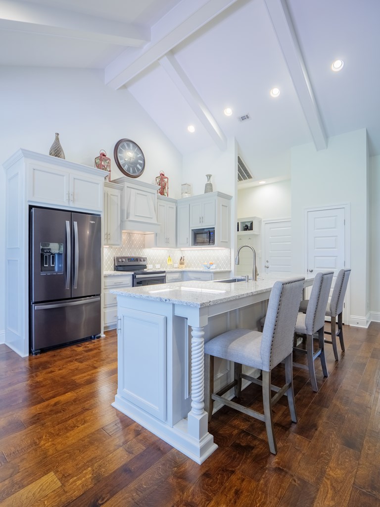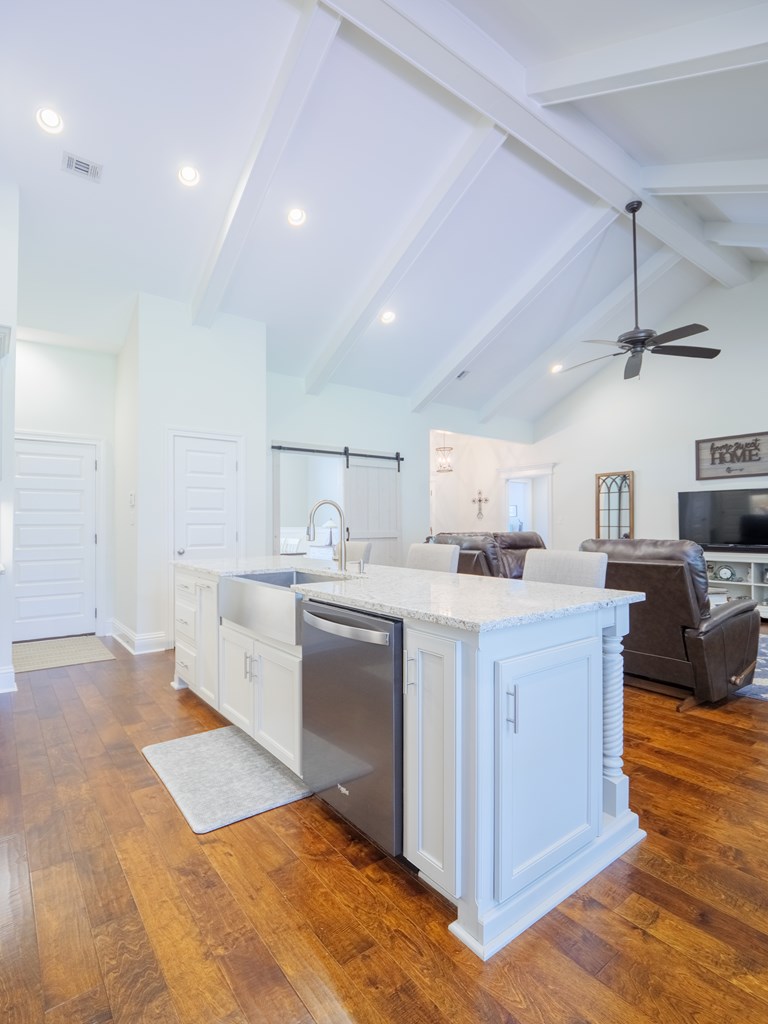 Located in the prestigious Kinderlou Forest Subdivision, this one-owner home built by Dixon Taylor Construction has been impeccably maintained. It could still easily pass as new construction! Featuring 4 bedrooms and 3 full baths, each bedroom offers private bath access for comfort and convenience. The open living room boasts a stone fireplace and flows seamlessly into the beautiful kitchen with granite countertops, tile backsplash, and abundant custom cabinetry. The spacious master suite includes two large walk-in closets, an en-suite bath with dual vanities, a corner soaking tub, tiled walk-in shower, and private water closet. Wood floors enhance much of the home, and the rear sunroom provides flexible living space with a pretty view of the patio sitting area in the fenced in back yard. A large 2-car garage plus a 3rd bay is perfect for golf carts, bikes, or storage. Enjoy manicured landscaping in both front and back yards. Community amenities include a staffed gated entrance, pools, tennis and pickleball courts, chapel, restaurant, playground, fitness center, and the renowned Davis Love III designed golf course. Truly a beautiful home! For more information on Kinderlou Forest S/D, visit their website at https://www.kinderlou-golf.com.