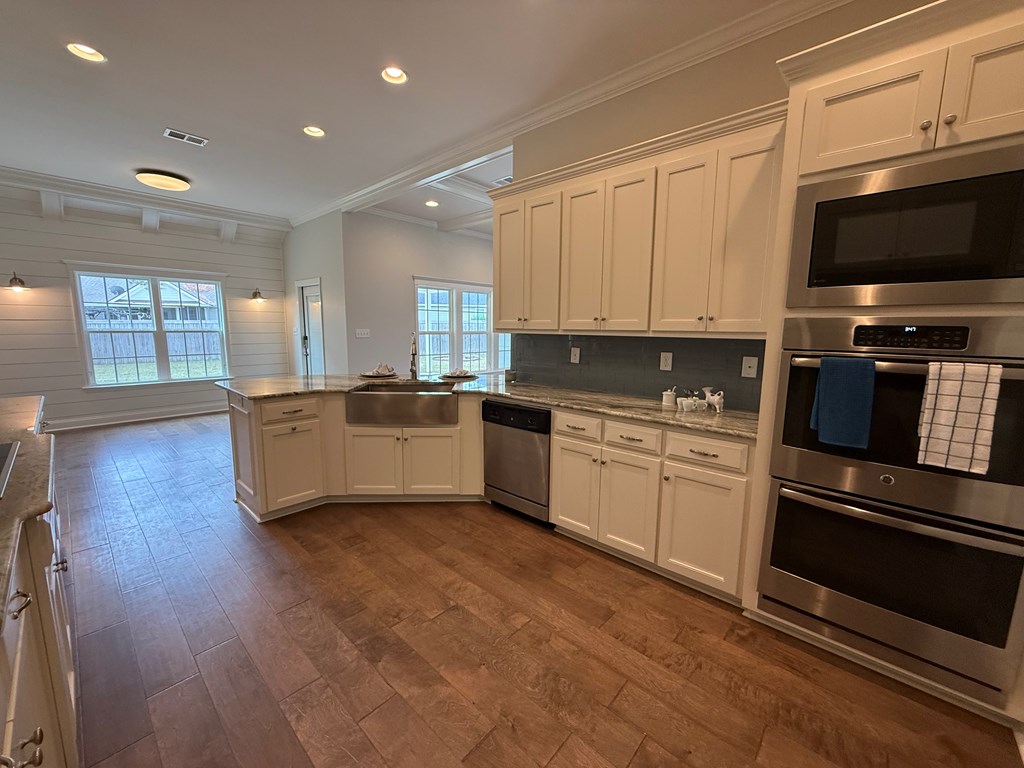 Gorgeous 4-Bedroom Home in a Gated Hahira Community! You'll love this beautiful 4-bedroom, 3-bath home tucked inside a quiet gated community in Hahira! Step inside to find hardwood floors, freshly painted walls, and an open, welcoming layout that's perfect for everyday living and entertaining. Home features a formal dining room as well as a spacious breakfast area. Coffered ceilings and shiplap are just a couple of the outstanding trim work in this beautiful home. The kitchen shines with granite countertops, new stainless steel appliances including brand new double ovens, microwave and dishwasher and custom cabinets that have just been freshly painted. The primary suite is a true retreat with a huge walk-in closet, tiled walk-in shower, and a soaking tub that's perfect for relaxing after a long day. All bedrooms have brand new carpet, and the laundry room is extra spacious with a sink and tons of cabinets for storage. Step out back to enjoy a large fenced yard and a covered patioperfect for BBQs, pets, and playtime. You'll also get to enjoy all the amazing community amenities, including two swimming pools (one lap pool) and a playground. This home has it allspace, style, and a great location in one of Lowndes County's most sought after neighborhoods!
